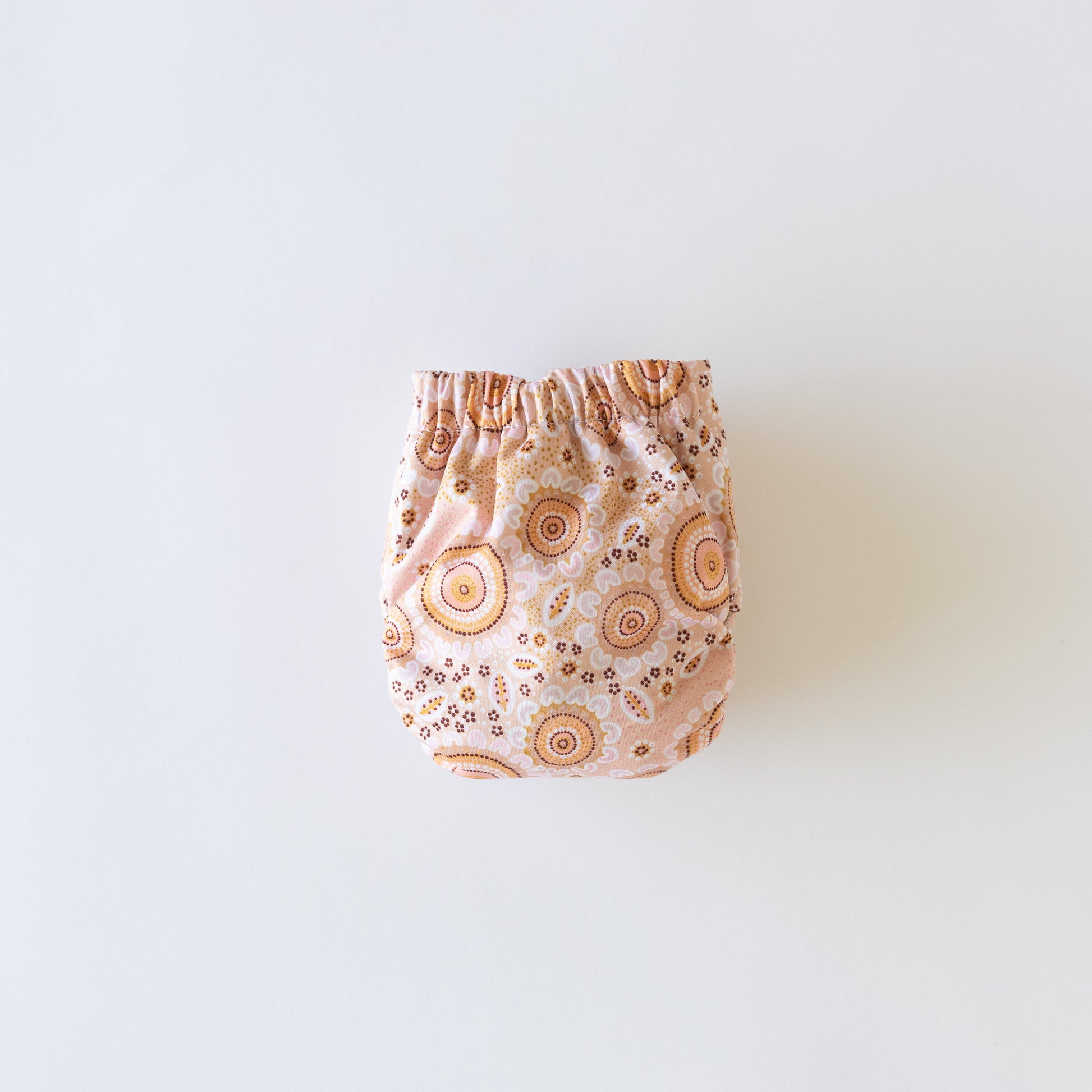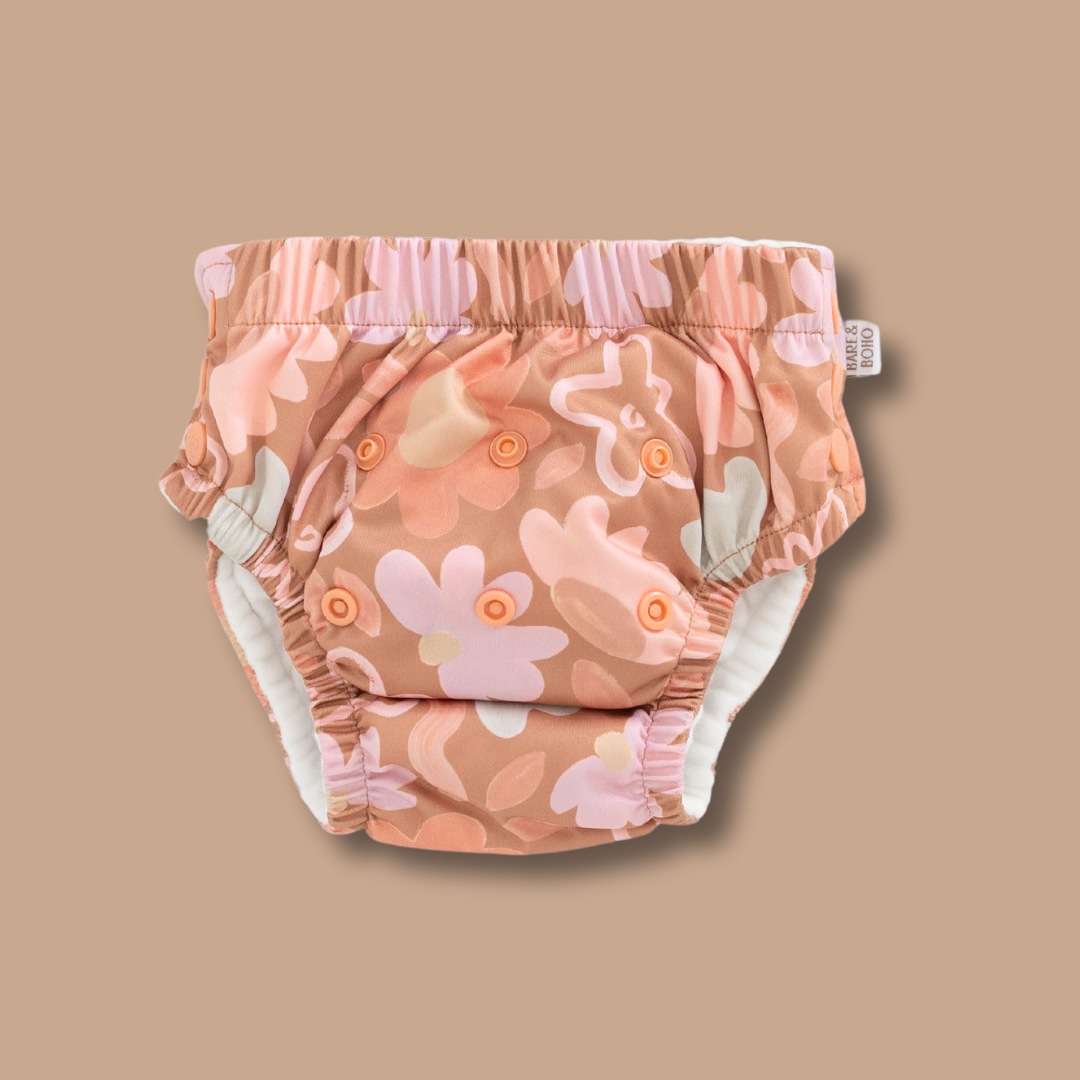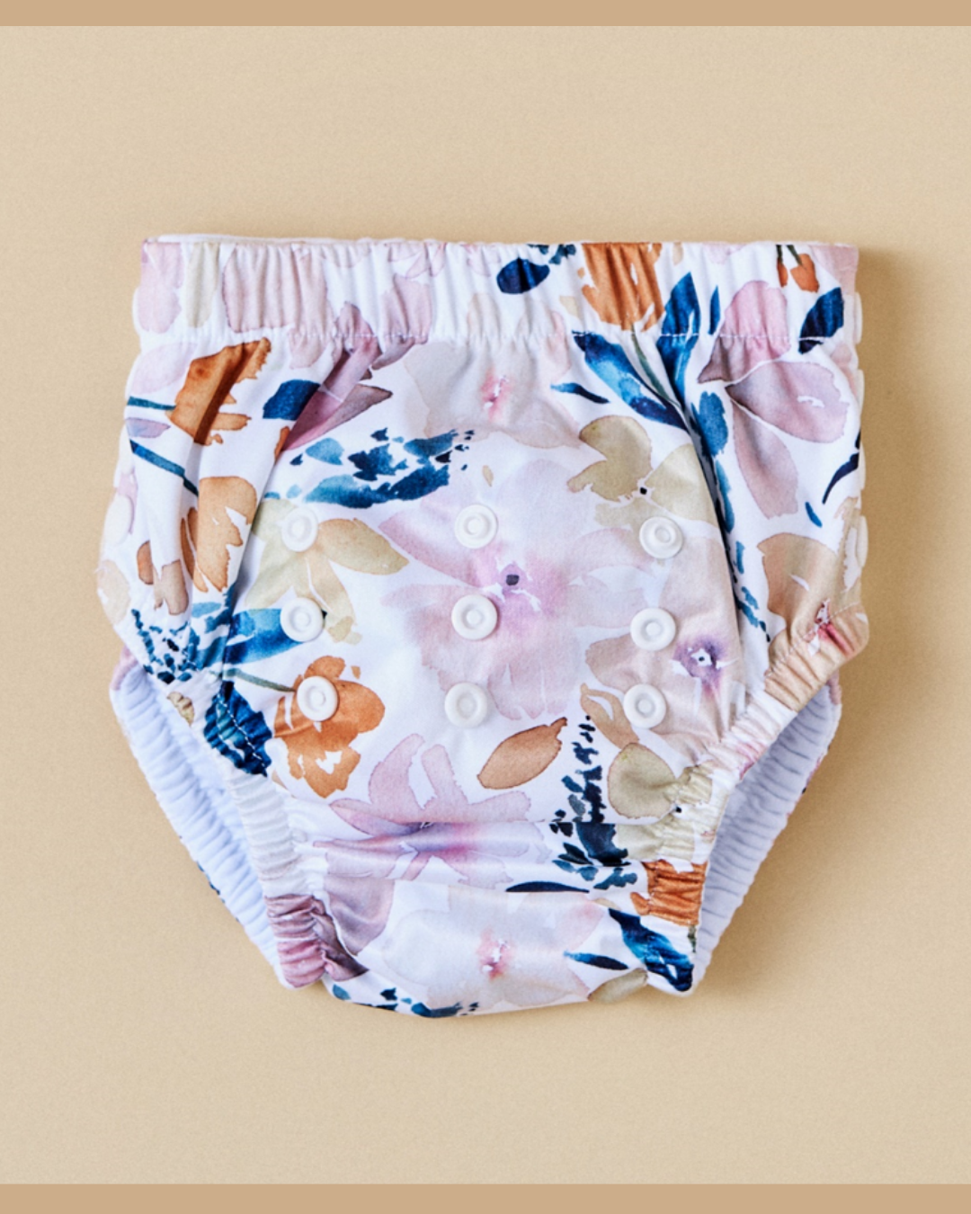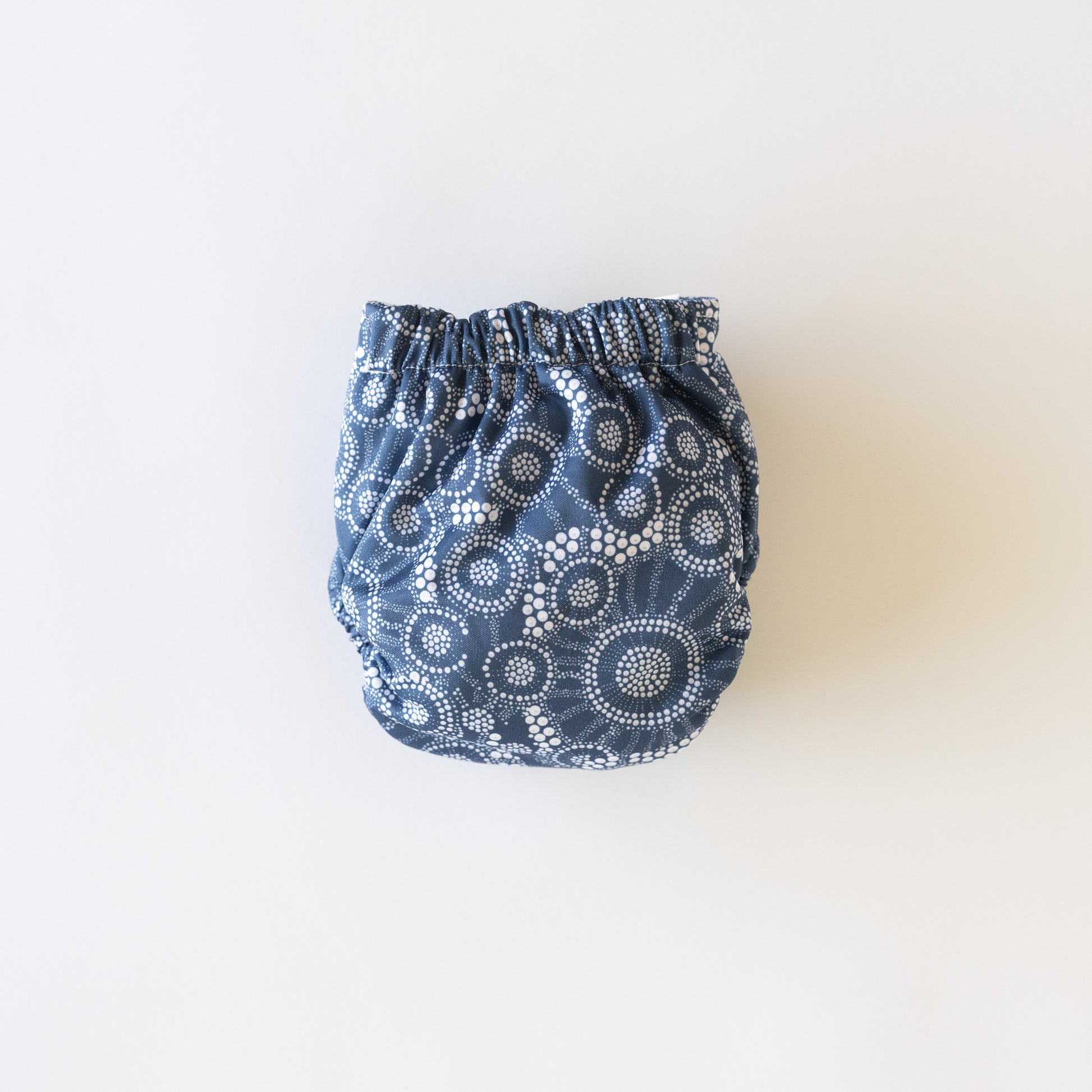 外側は使用済みポリエステルから、内側はオーガニックコットンと竹から作ったレーヨンで作られています。テープと同じように1-2回分のおしっこをしっかり吸収するけれども、濡れたら気持ち悪くて赤ちゃんが教えてくれるので、トイレットラーニングにもぴったりです。濡れたらすぐに替えること、そして毎回「おしっこでたね」と声を掛けることで、排泄の意識が育ちます。