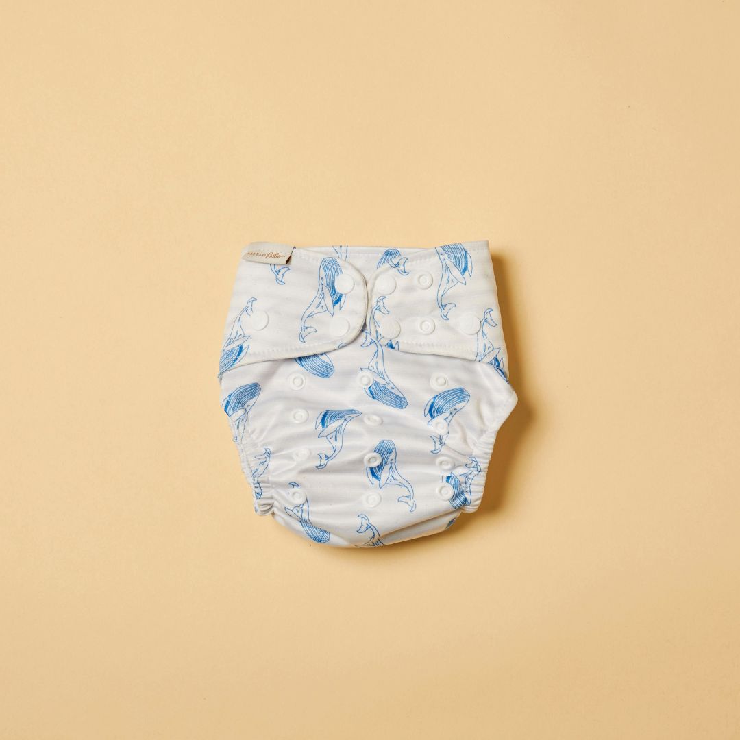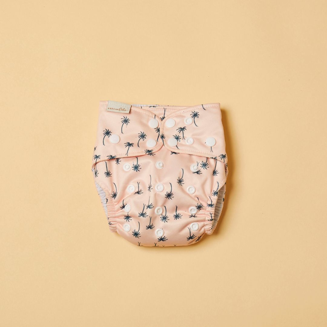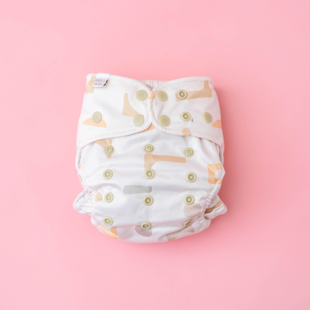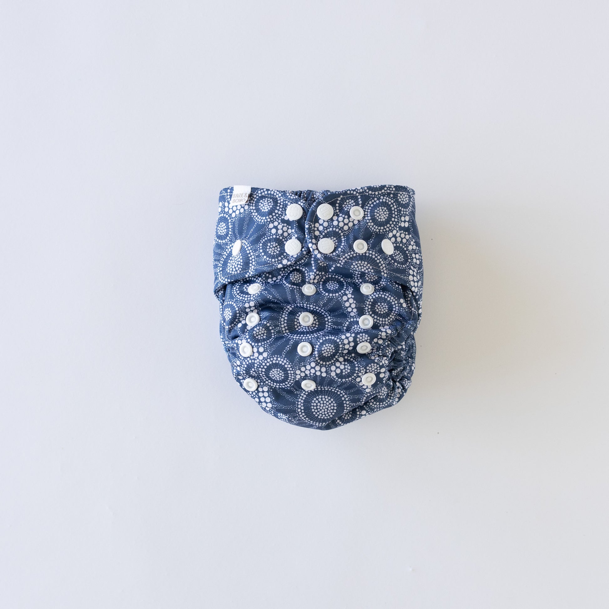 使用済みペットボトルから作られたポリエステル100%のおむつカバーで、地球にやさしい。おむつのすてきな柄はオーストラリア人デザイナーがBare and Bohoのためにデザインしています。