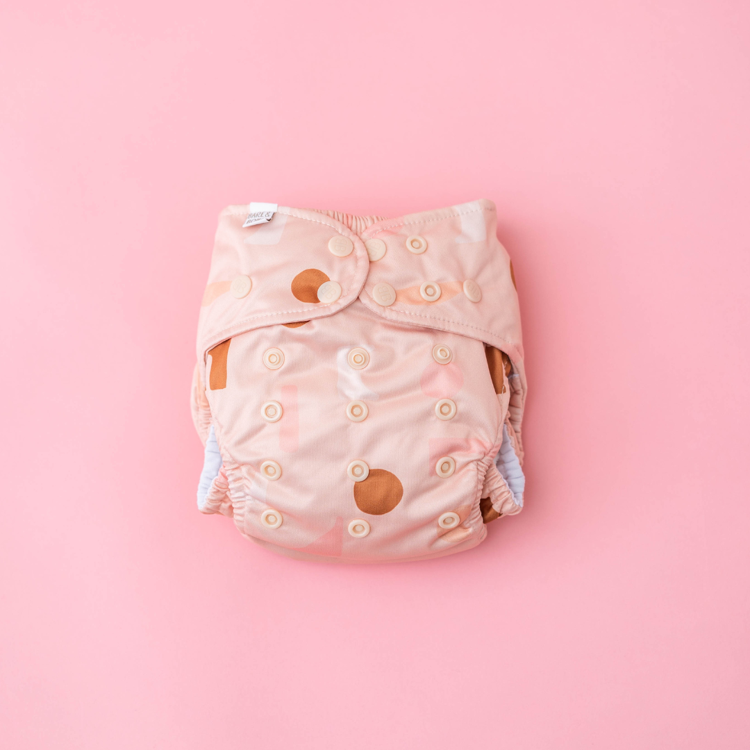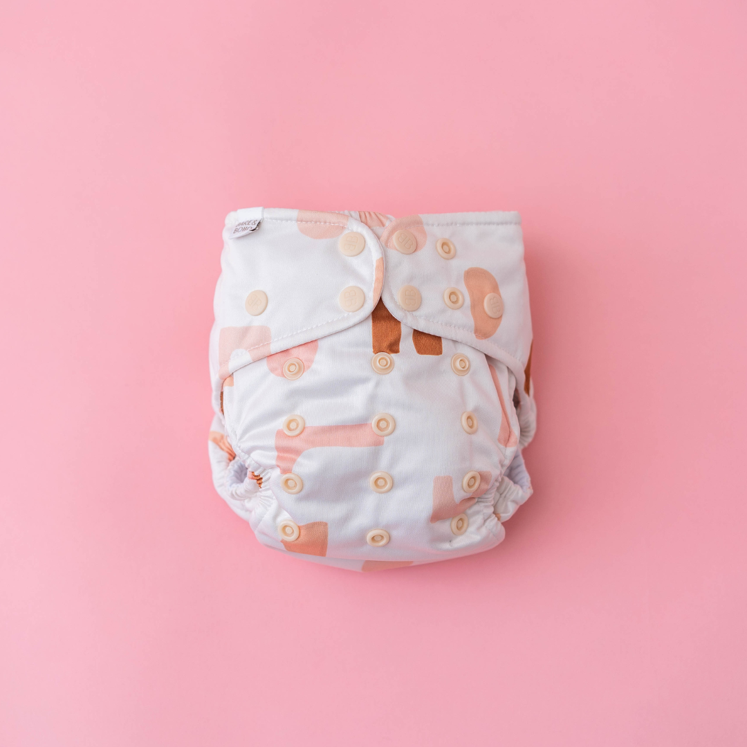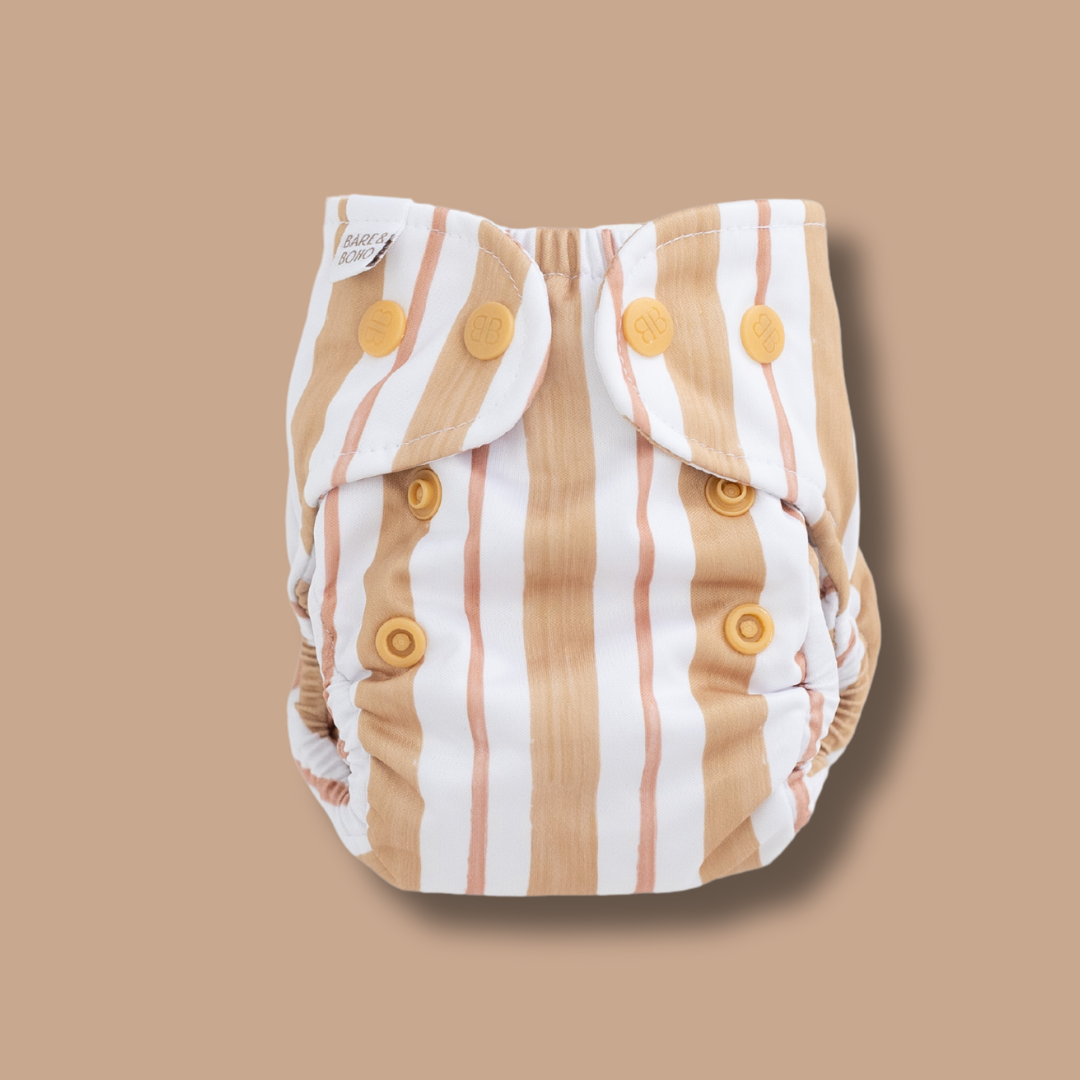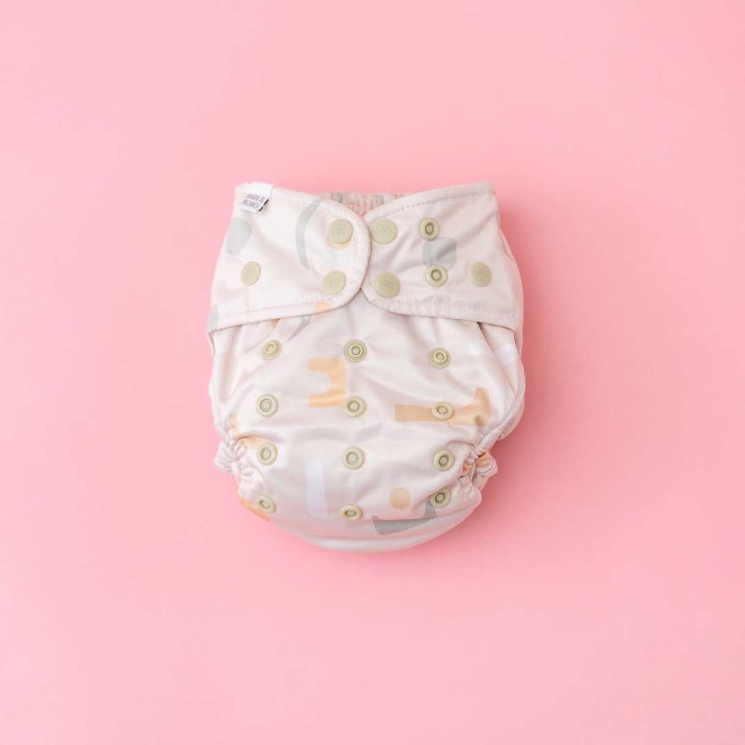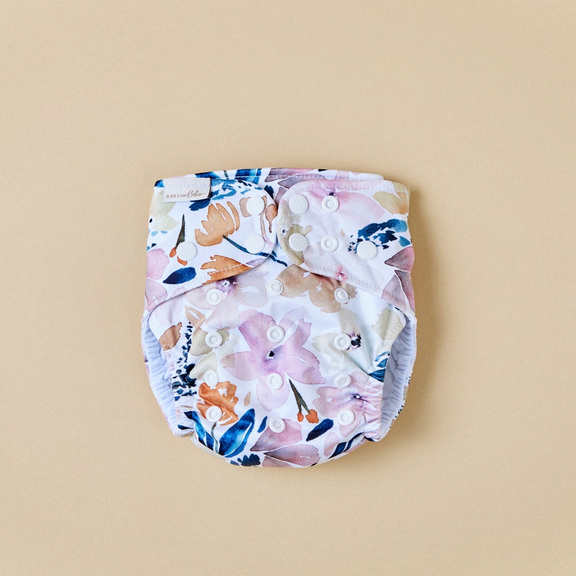 使用済みペットボトルから作られたポリエステル100%のおむつカバーで、地球にやさしい。おむつのすてきな柄はオーストラリア人デザイナーがBare and Bohoのためにデザインしています。