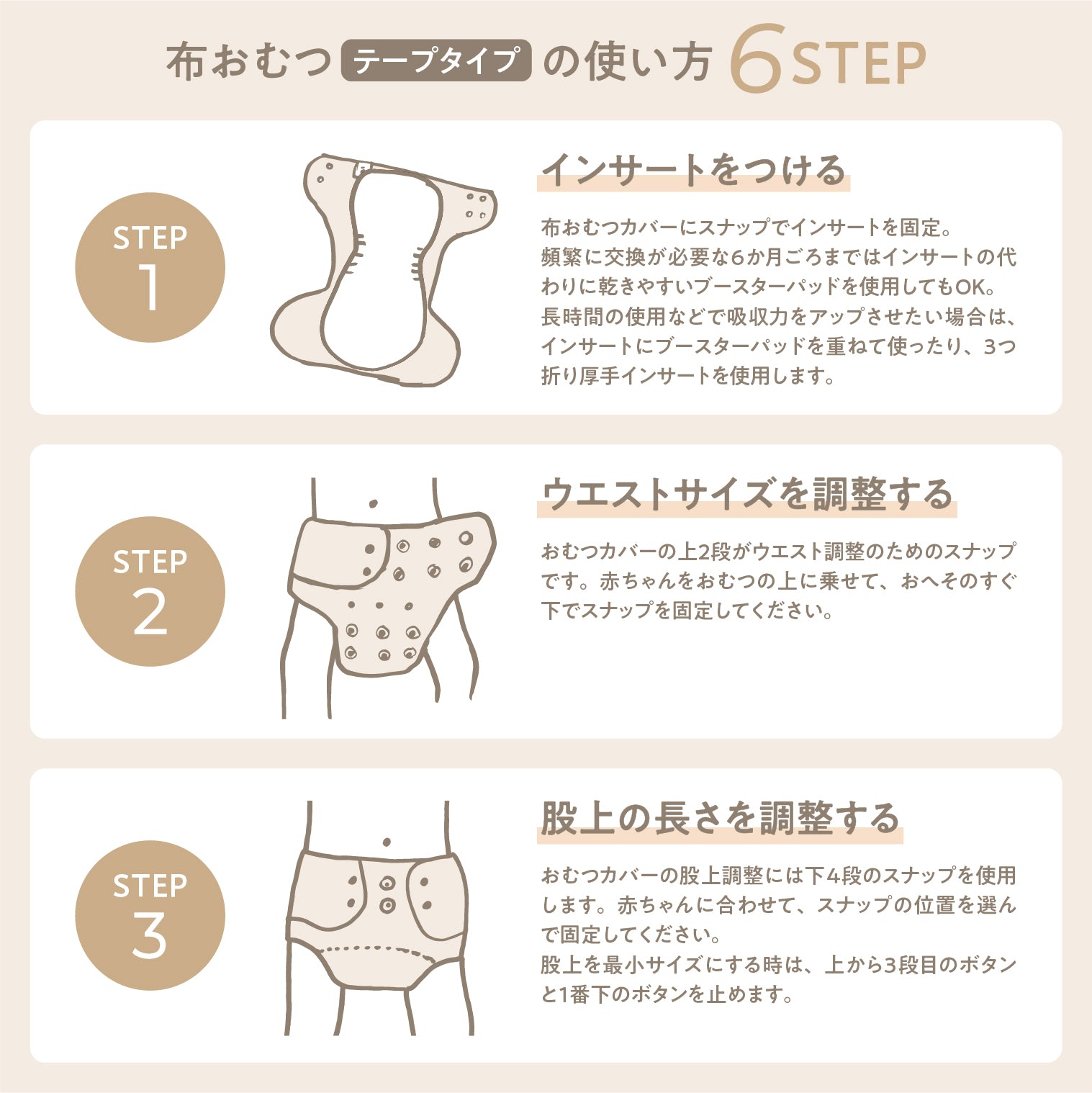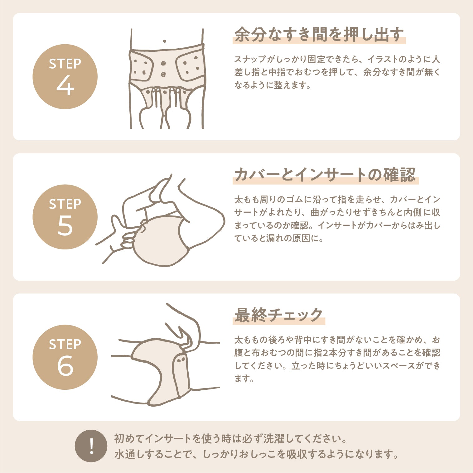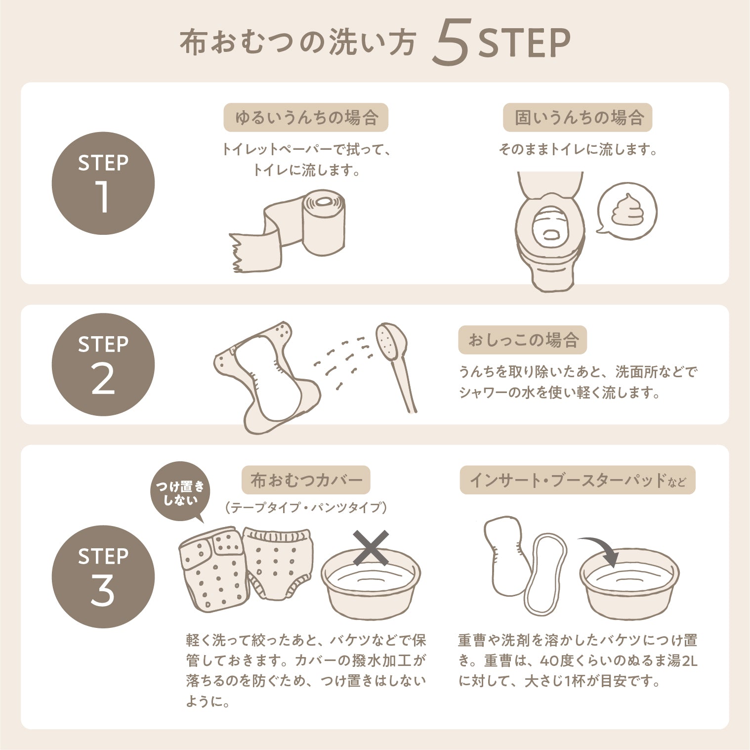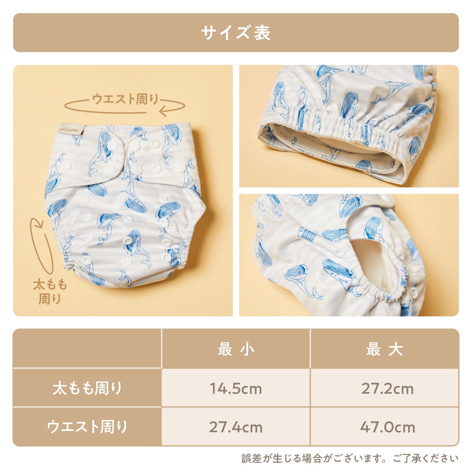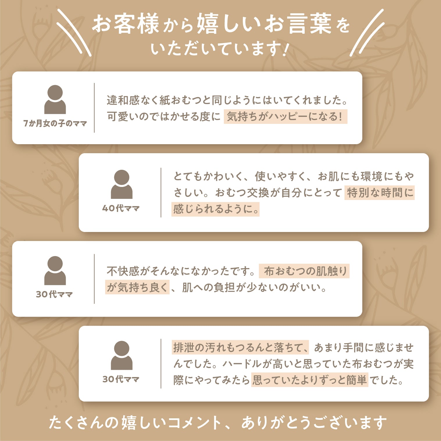 "サステナブルなデザイナーズ布おむつ"布おむつカバーとインサートのセット。